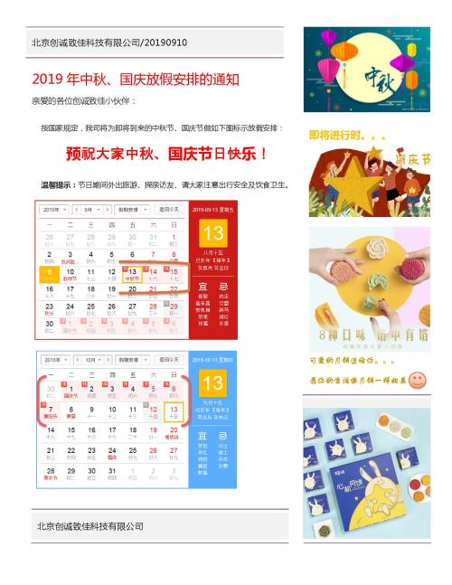 一、中秋節放假時間:自2019年9月13日(星期五)至2019年9月15日(星期日)放假,共3天,9月16日(星期一)正常上班。