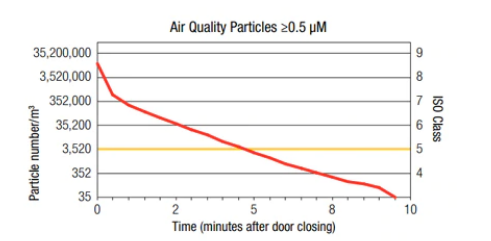 常規(guī)開門時間5分鐘內,能夠保持ISO Class 5 (Class 100) 凈室空氣質量