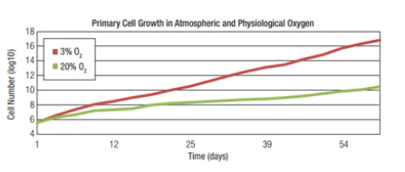低氧細胞培養(yǎng)通常長得更快、存活更久,表現(xiàn)出更少壓力。